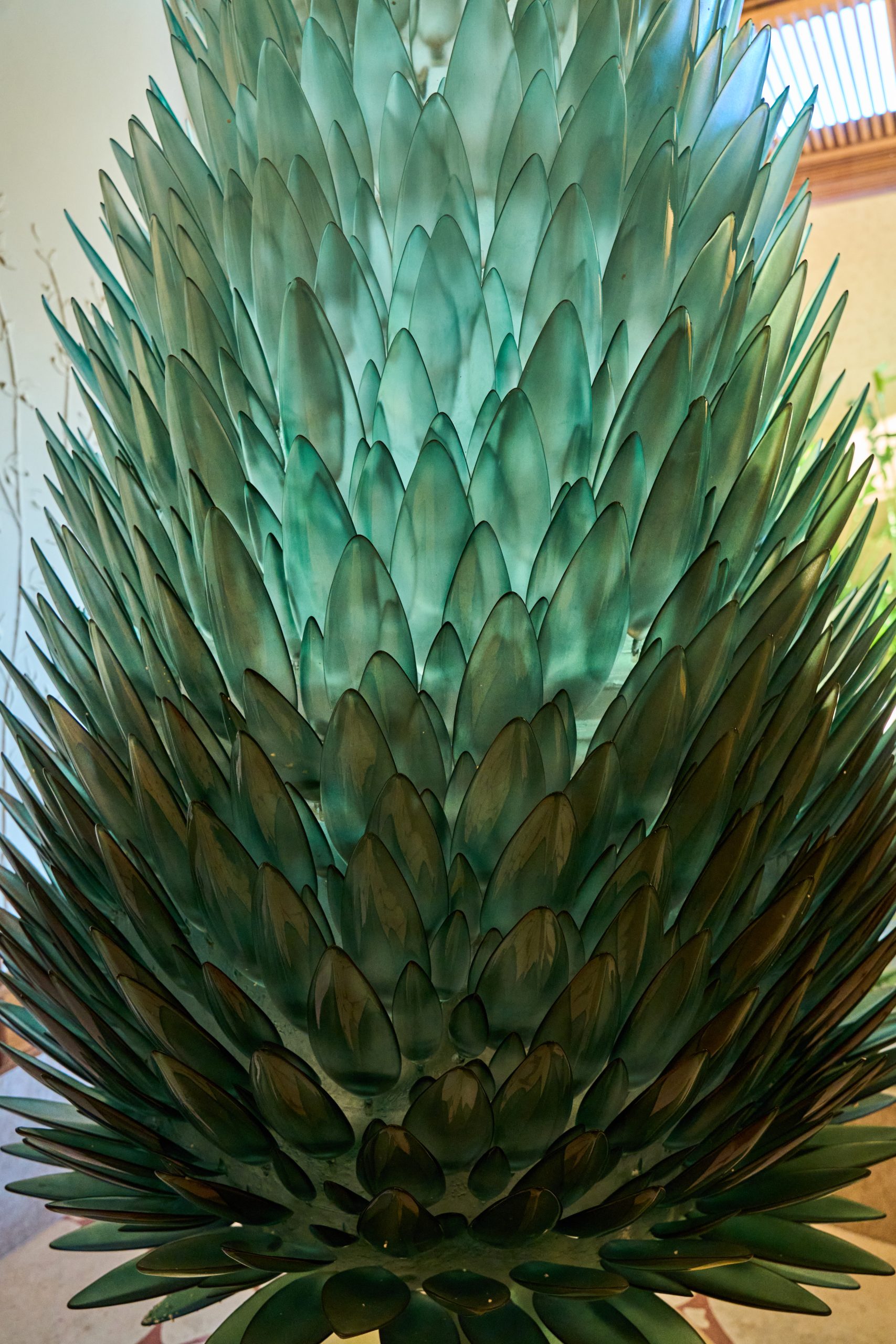 The tree is composed of 1,500 individually handcrafted resin leaves, each meticulously shaped, finished, and installed by our skilled artisans. A distinctive gradient effect defines the design, with rich green tones at the base gradually transitioning into a fully transparent finish at the top. This seamless color flow creates a sense of lightness, movement, and visual depth, allowing the tree to interact beautifully with ambient lighting and its surrounding space.